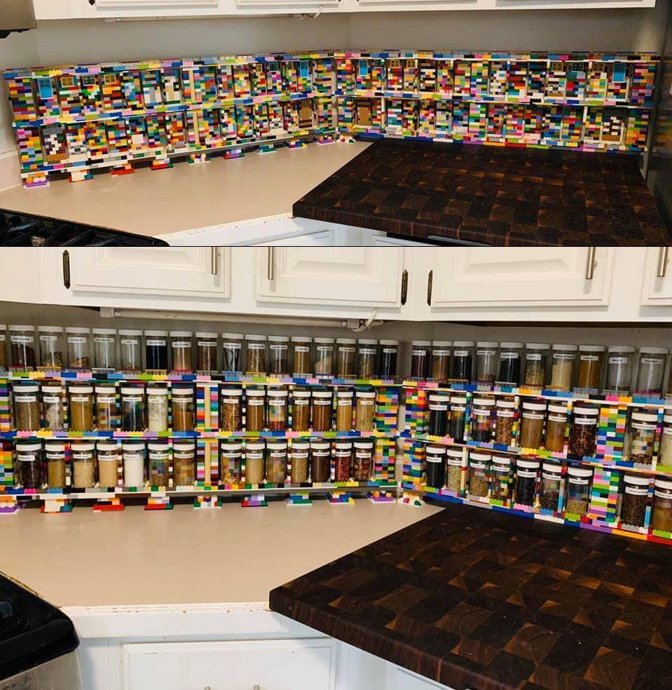 9. Rak bumbu yang terbuat dari Lego. Sebenarnya bagus, tapi kalau terlalu banyak warna gini, jadi bikin bingung gak, sih?