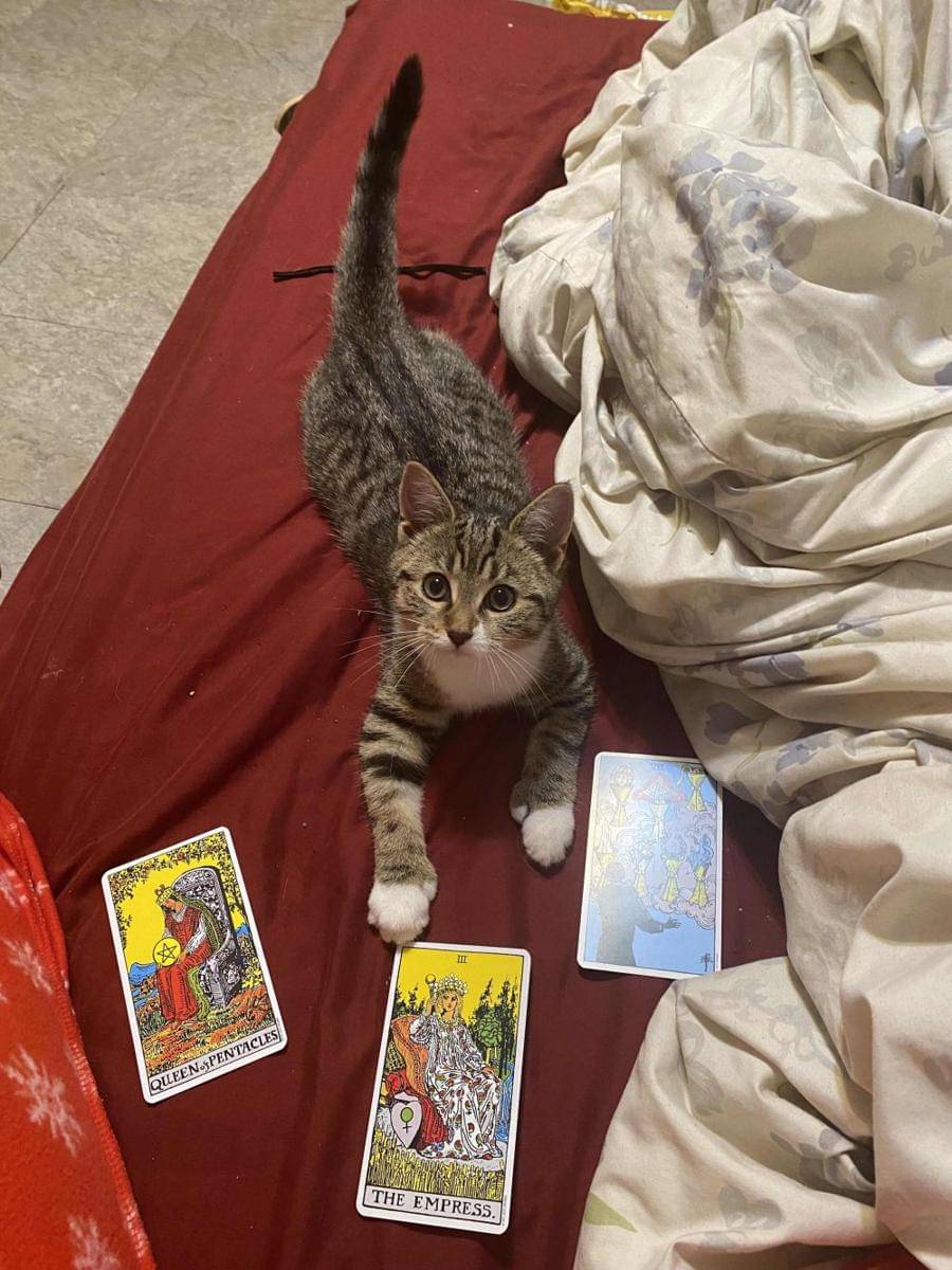 10 Potret Kucing Main Kartu Tarot, Bisa Meramal Nasib?