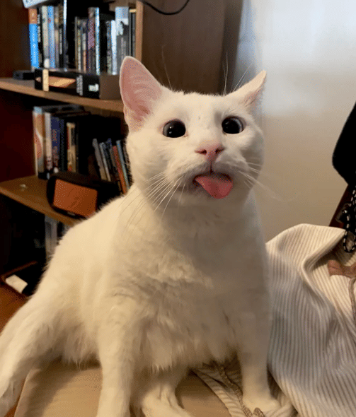 Ada yang menjulurkan lidah, mengernyitkan dahi sampai menyeringai songong. Sebagai hooman pasti geregetan dengan aksi tengil tersebut. Kamu bisa melihat tingkah-tingkah ngeselin kucing putih itu pada tujuh potret lucu di bawah ini.