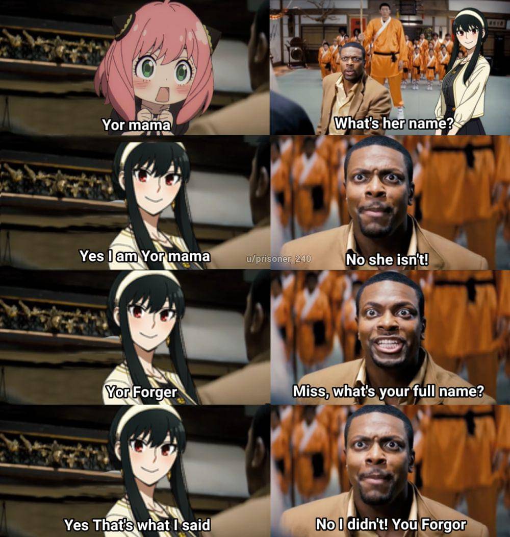 Banyak sekali tingkah dan momen lucu Yor Forger dalam meme-meme ini. BTW, Yor Forger karakter SPY x FAMILY favoritmu, bukan?