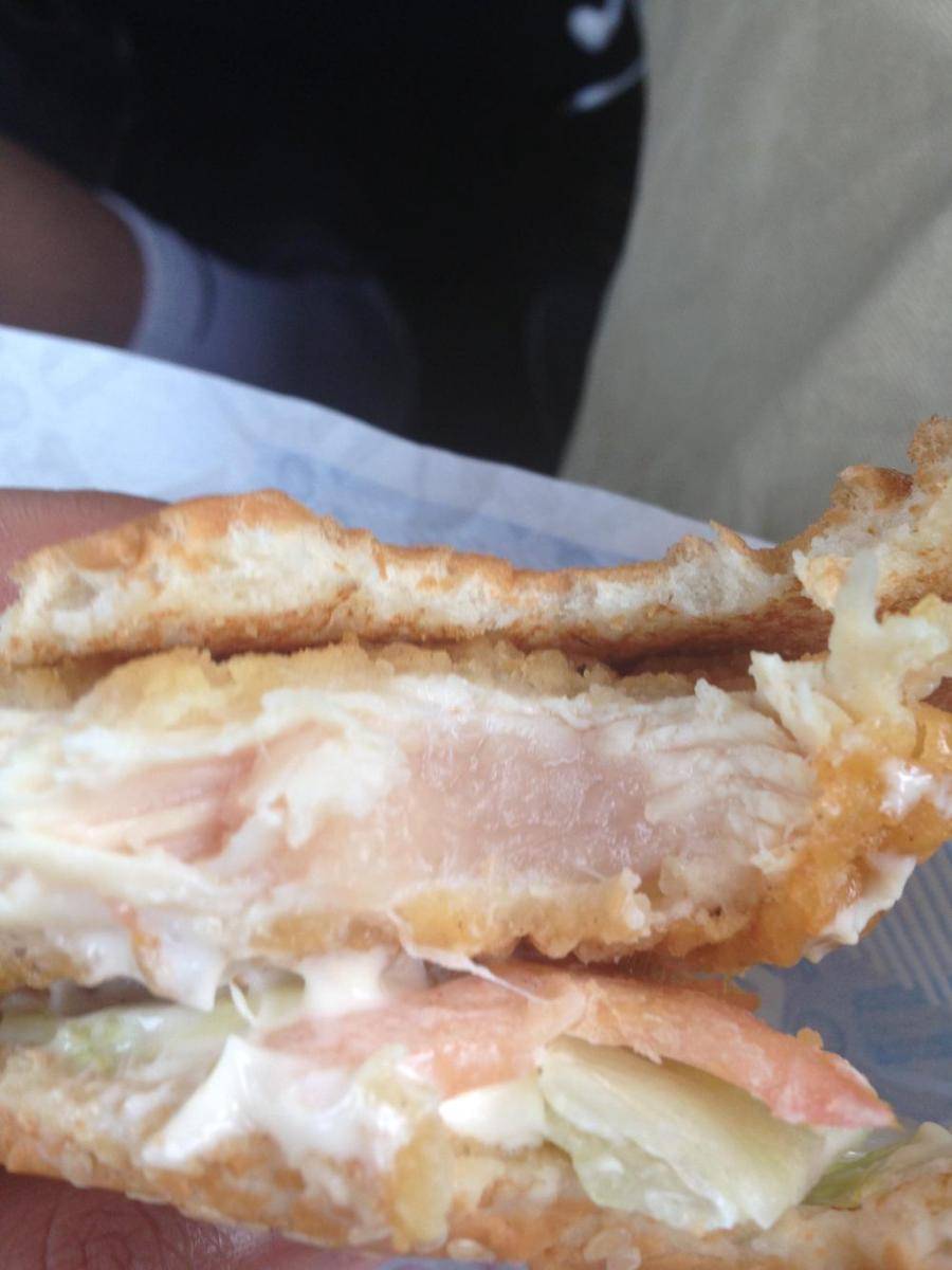 9. Lagi-lagi ada sandwich dengan isian ayam mentah. Mending beli baru, deh!