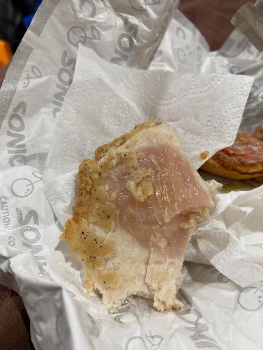4. Pesan burger ayam, tapi dagingnya masih mentah. Mana udah dimakan setengah pula