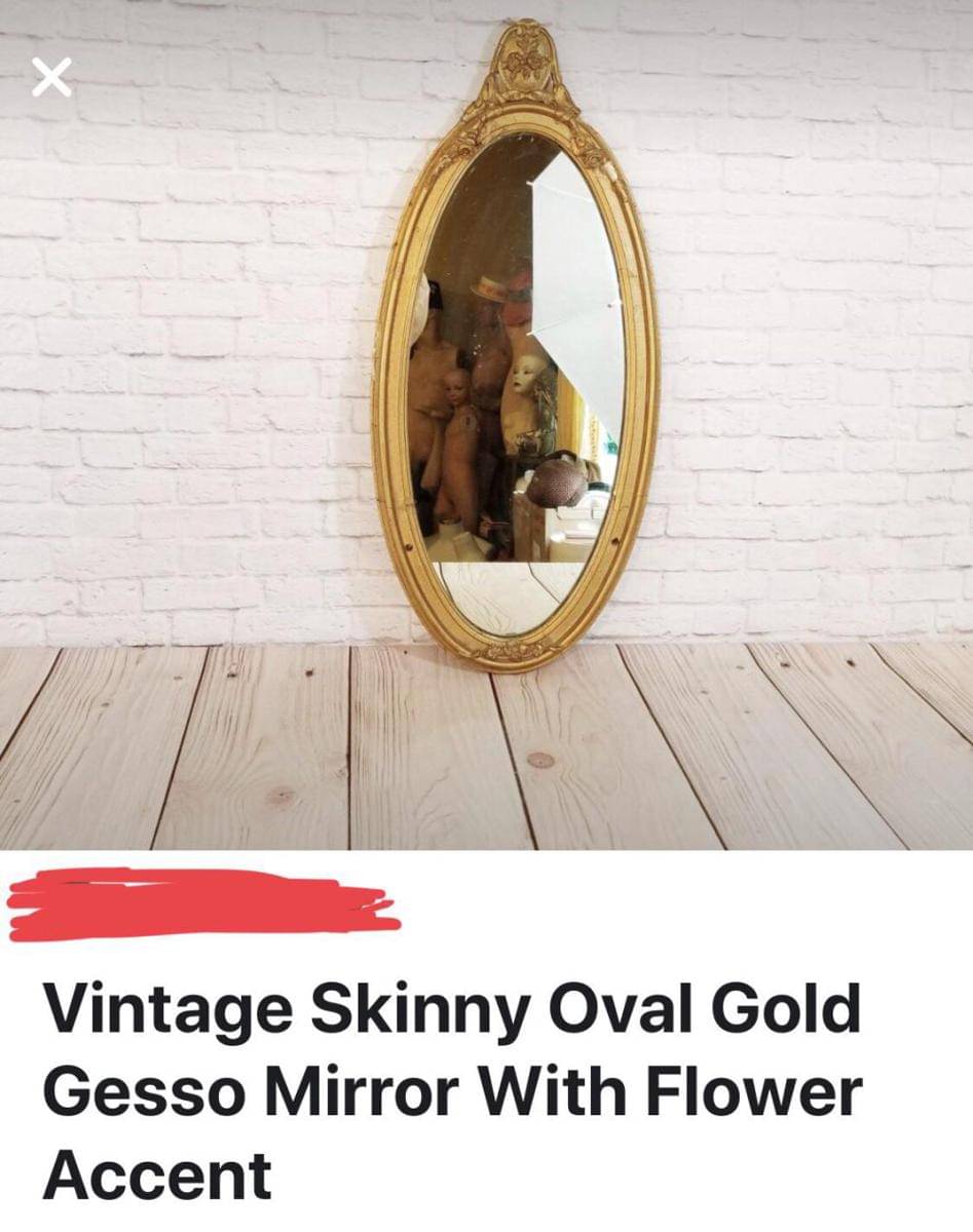 1. Ada momen horor yang terjadi saat orang ini memotret cermin yang ingin dijual. Coba lihat cerminnya, ada bayangan hitam!