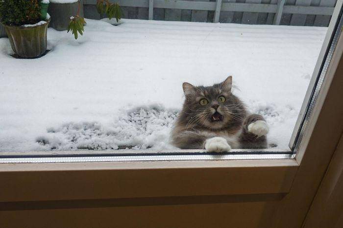 4. "Cepat buka, hooman! Aku sudah hampir hipotermia ini!"
