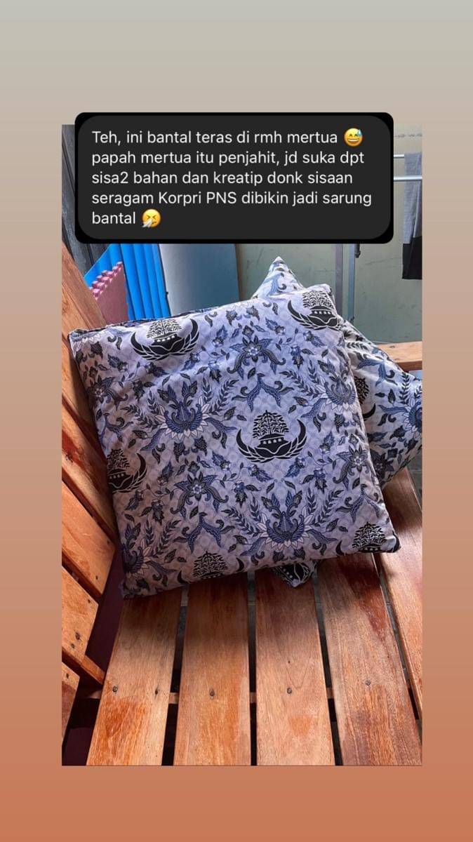 5. Daripada terbuang sia-sia, sisa kain seragam PNS dijadikan sarung bantal, dong