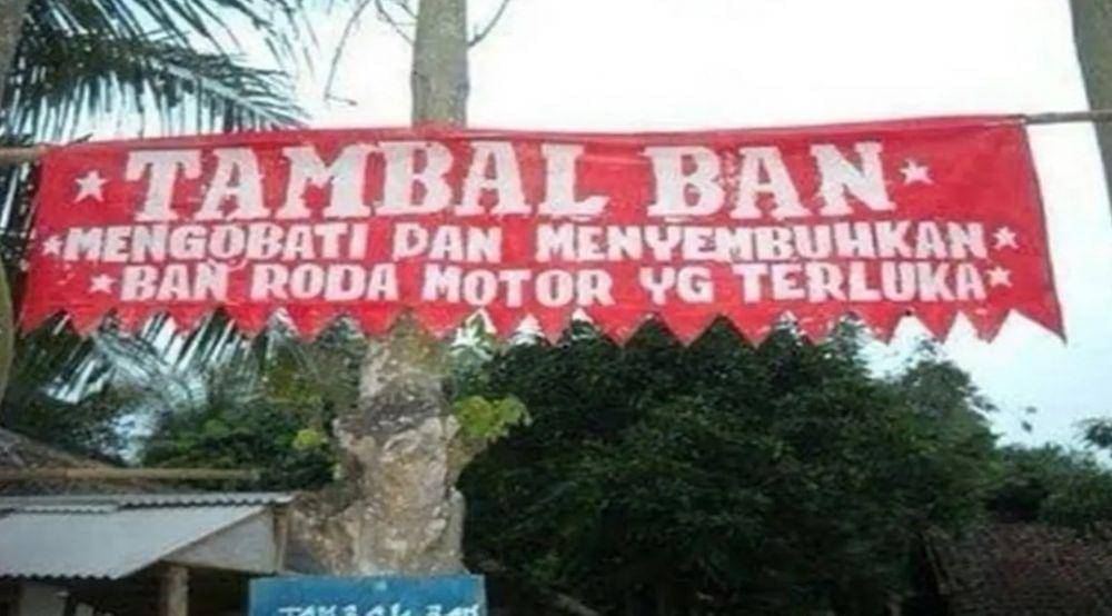 Biasanya tukang tambal ban memasang spanduk untuk mempromosikan diri. Namun, beberapa spanduk tambal ban berikut malah bikin ngakak. Penasaran? Yuk, simak!