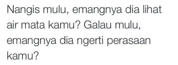 Sebagai generasi baper alias sukanya bawa-bawa perasaan masa kini, kamu yang selalu berinteraksi pakai smartphone lewat berbagai jenis chat room serta media sosial pasti sering banget nemuin postingan-postingan galau yang bikin hati kamu yang rapuh itu makin sensitif. Postingan-postingan berupa quotes, meme atau nasehat yang to the point atau kadang agak bertele-tele pasti bikin kamu tergoda buat berhenti sejenak buat membaca, entah karena gambarnya yang menarik, desain font yang kece, atau karena emang itu tujuan dari timeline. Ya, nggak sih?