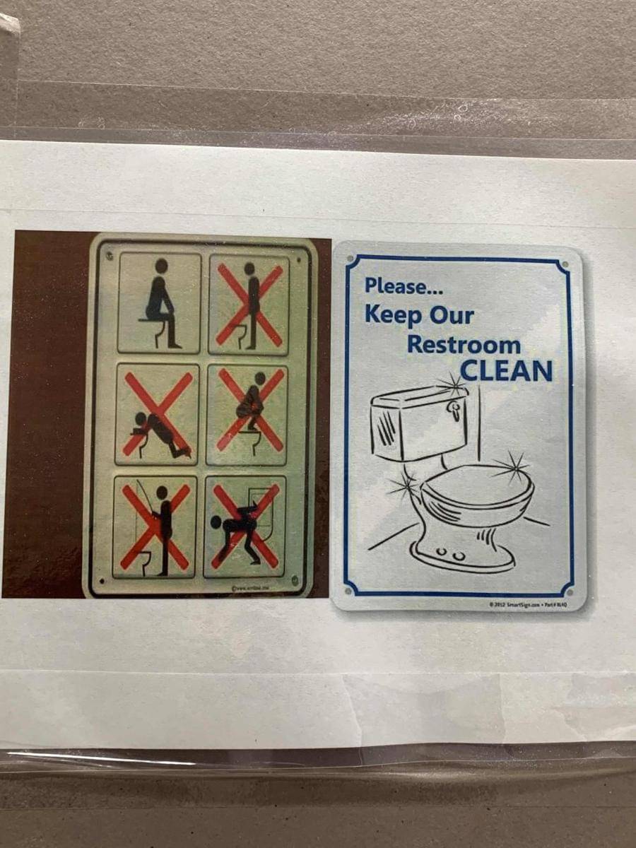 2. Capek banget sama tanda toilet ini. Masa ada peringatan gambar dilarang buang air kecil kayak anjing, ngakak banget!