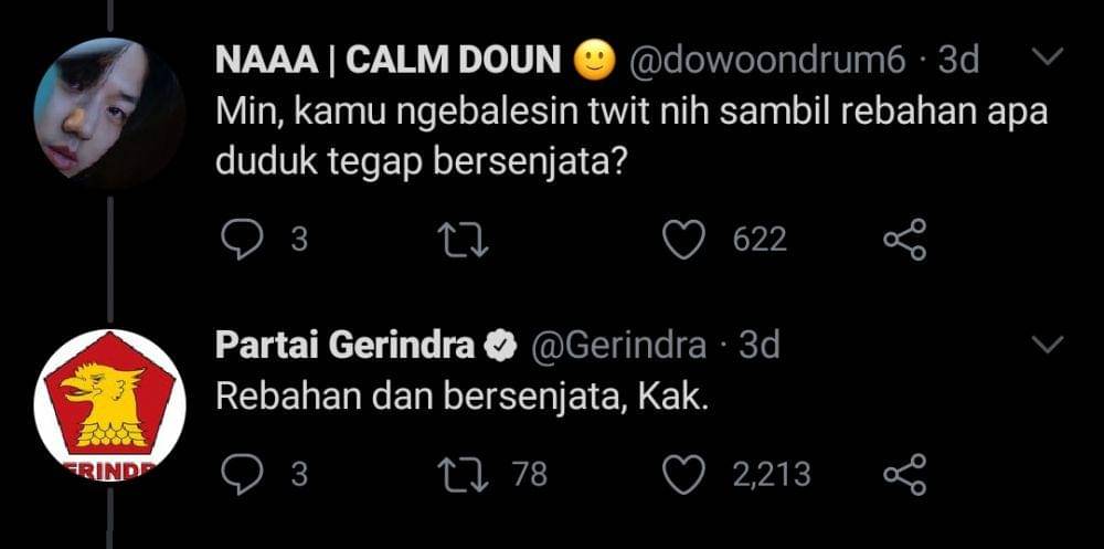 10 Momen Akun Gerindra Membalas Cuitan Netizen di Twitter, Humor Abis!