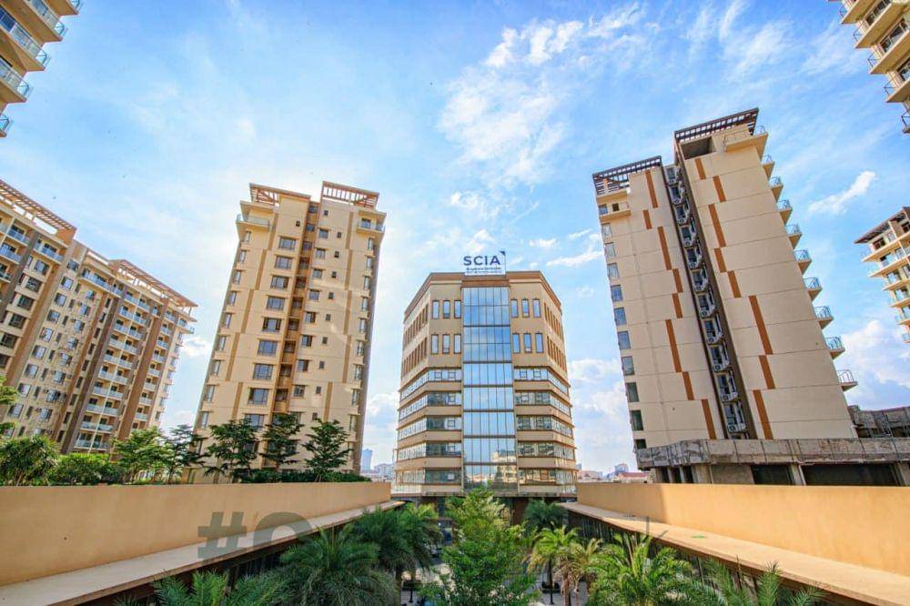 2. Rotha santai mengenakan outfit yang simple namun kece, berpose foto dengan backgroundnya adalah Institute of Technology of Cambodia