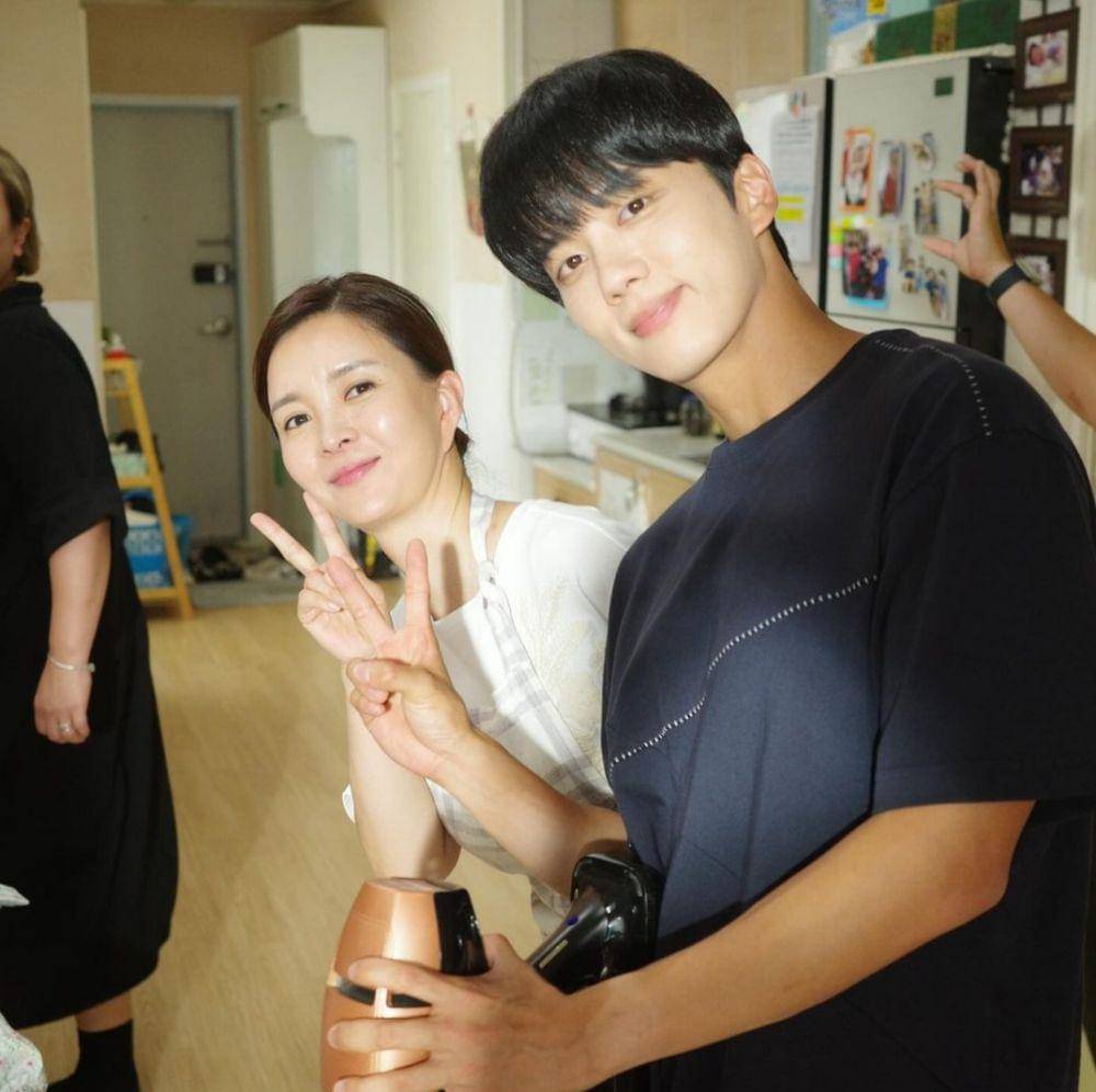 5. Yoo Young Jae juga mengunggah foto dirinya bersama aktris Shin Eun Jung yang berperan sebagai ibunya