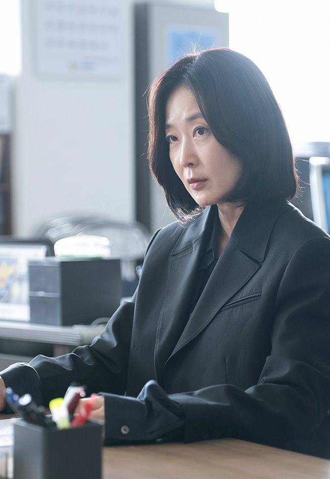 4. Kim So Young (Kim Hye Hwa) adalah ketua tim unit Kejahatan Kekerasan kepolisian Nobong di drama The Judge from Hell, handal!
