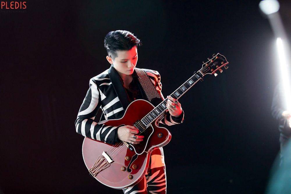 1. Woozi Seventeen membuat heboh publik dengan sisi manly yang ditampilkannya dalam lagu "Ruby" yang dibawakan dengan versi band live