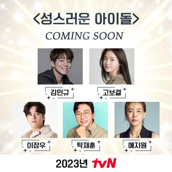Jajaran pemain Holy Idol telah dikonfirmasi pada bulan November lalu. Mereka adalah Kim Min Gue, Go Bo Gyeol, Lee Jang Woo, Tak Jae Hoon, dan Ye Ji Won. Ditargetkan untuk tayang pada paruh awal 2023, Holy Idol menyuguhkan kisah pendeta agung Rembrary (Kim Min Gue) yang tiba-tiba masuk ke dalam tubuh seorang idol bernama Woo Yeon Woo.