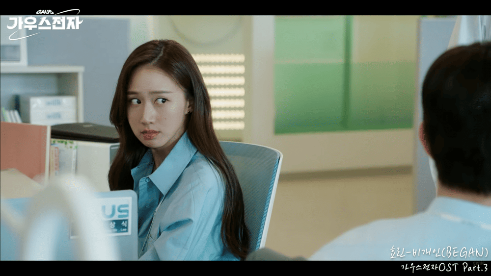 8. Gigih dan bersemangat, Gun Gang Mi (Kang Min Ah) dikenal dengan kecantikannya di Gaus Electronics