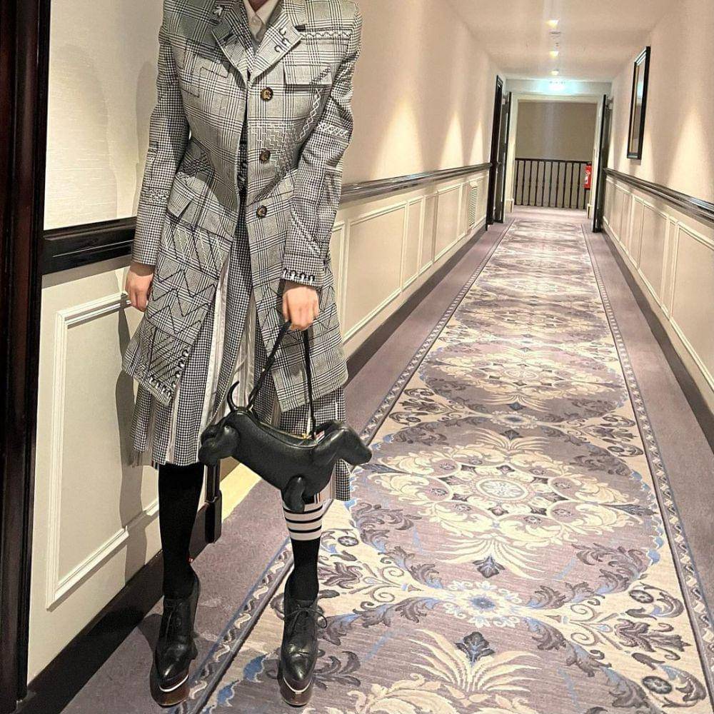 4. Tas jinjing unik yang berbentuk anjing dari koleksi Thom Browne Pre Fall 2023 juga turut melengkapi penampilan idol kelahiran 2000 ini