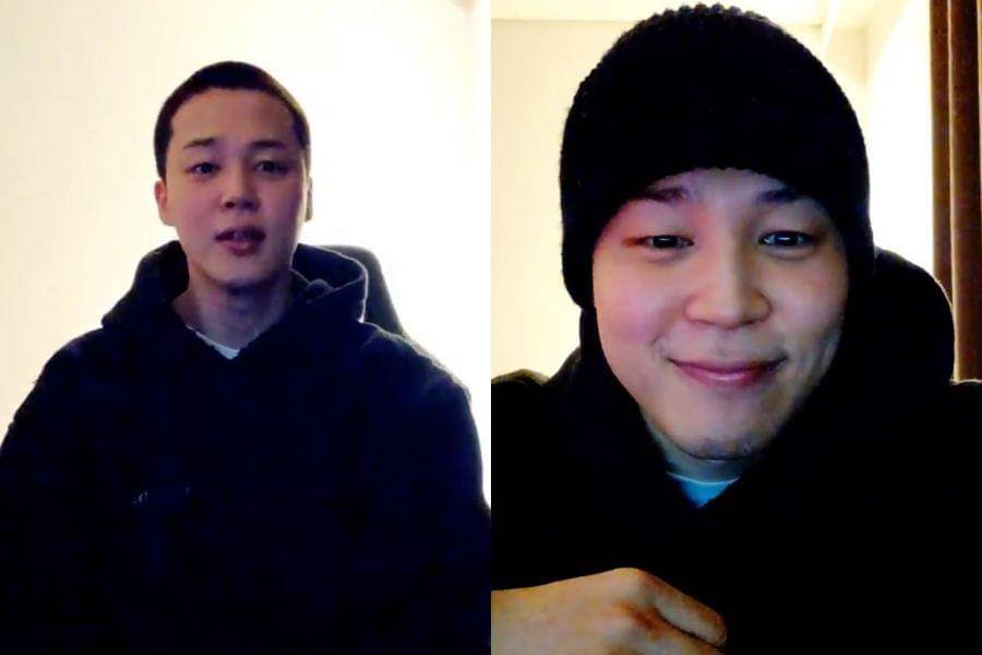 Ia tampak malu-malu, tapi akhirnya memenuhi keinginan fans untuk melihat rambutnya. Tak lama, Jimin kembali mengenakan beanie-nya dengan mengatakan, "Aku akan kembali dengan baik."
