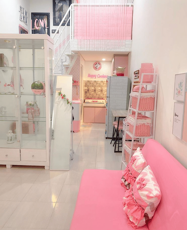 2. Bagian teras ditambah hiasan bunga dan dicat pink-putih memberi kesan manis