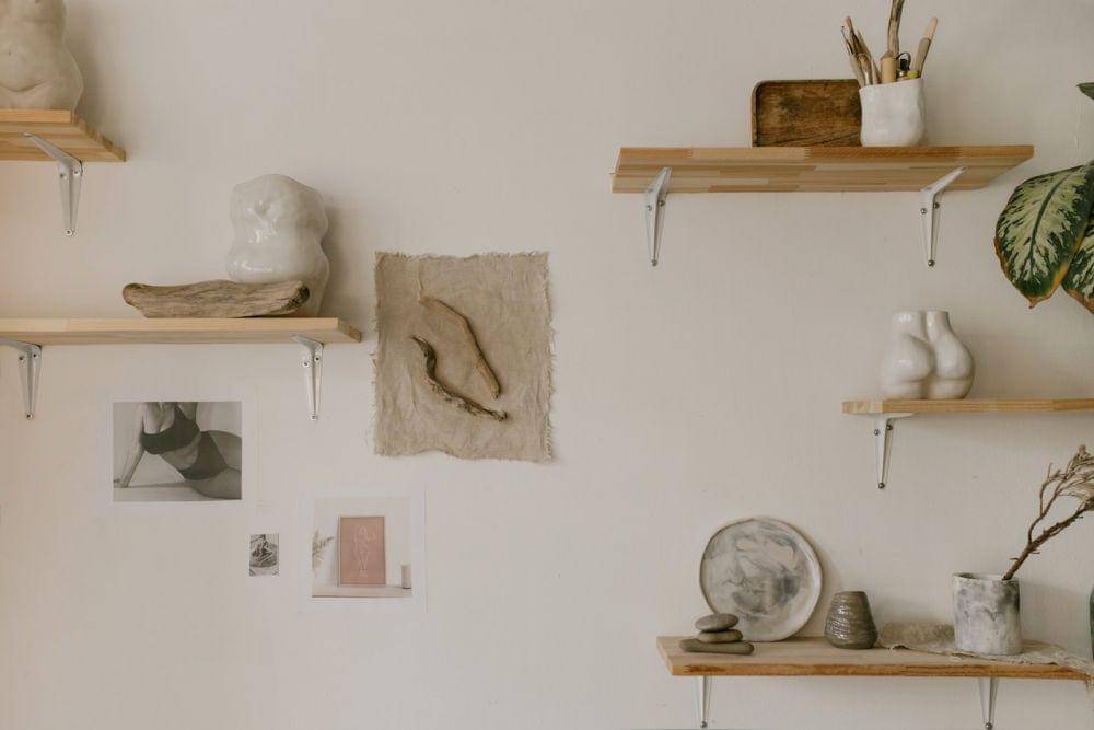 4. Kamu juga bisa menggunakan rak dinding kayu untuk meletakkan berbagai jenis benda, seperti buku, piring hias, vas bunga, dan sebagainya