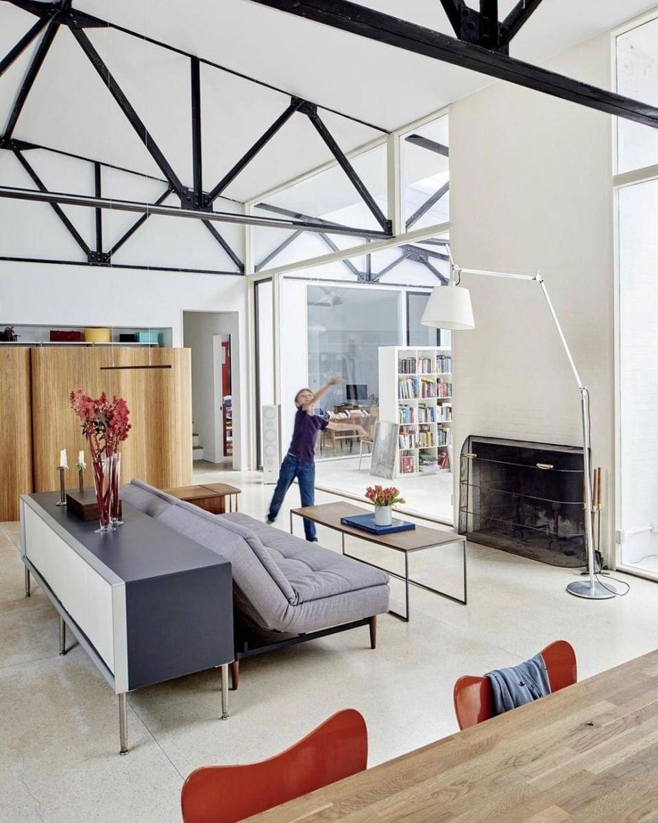 Metal beams mungkin jauh dari bayanganmu saat bicara model plafon. Namun, ternyata bisa dipasang sebagai elemen hunian, kok. Seperti rumah di atas yang sengaja memasang rangka-rangka logam di bagian plafon sebagai aksen.