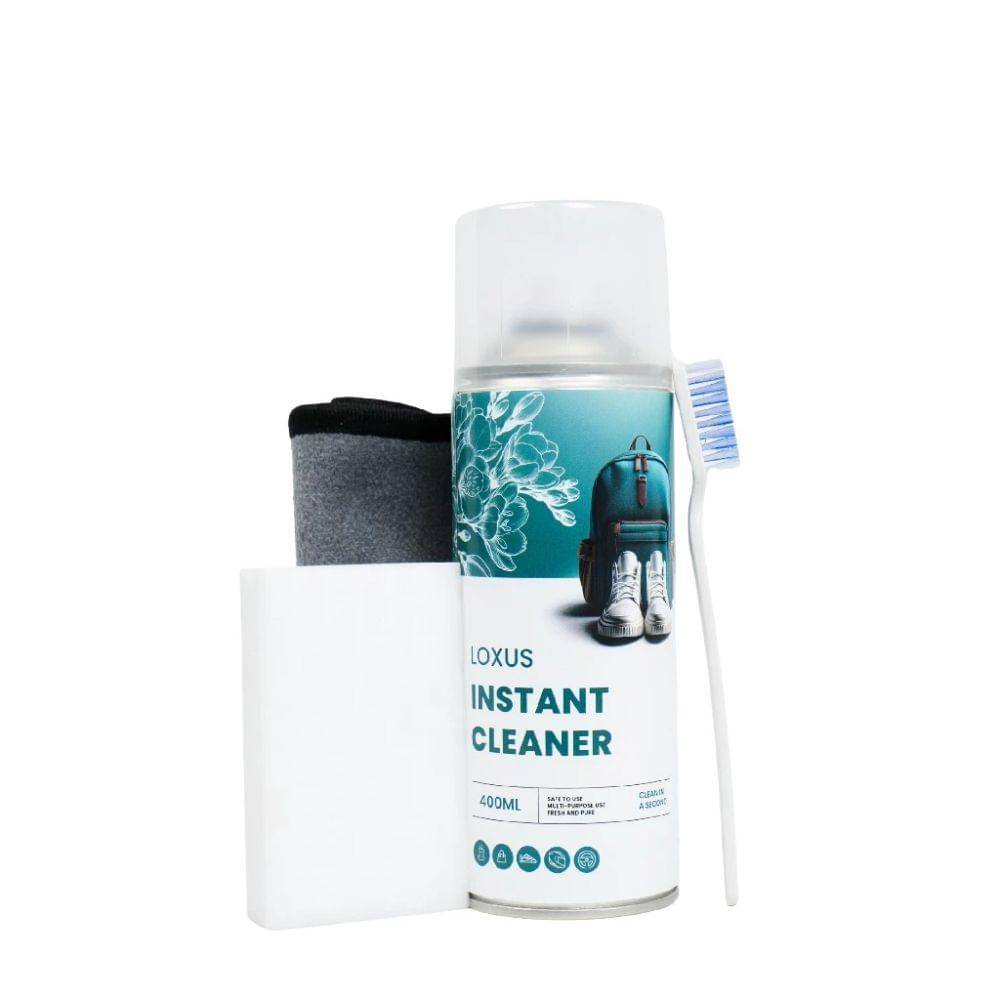 Loxus Instant Cleaner hadir dengan kemasan tabung dengan cover putih dan detail tulisan warna tosca. Kamu akan mendapatkan lap mikrofiber sekaligus sikat yang bisa kamu pakai untuk membersihkan kotoran dan mengelap sisa foam pada sepatumu.