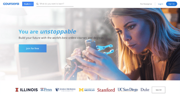 Coursera adalah situs e-learning yang disediakan dari berbagai universitas di dunia di internet yang dapat diakses oleh siapa pun. Sebagian besar kelas yang diadakan di Coursera ini gratis, namun ada juga beberapa e-course yang menawarkan sertifikat tertentu yang berbayar. Plusnya lagi, tutornya berasal dari berbagai macam universitas ternama di Amerika lho, seperti Stanford University, University of Michigan, University of Pennsylvania, dan lainnya. Tertarik?