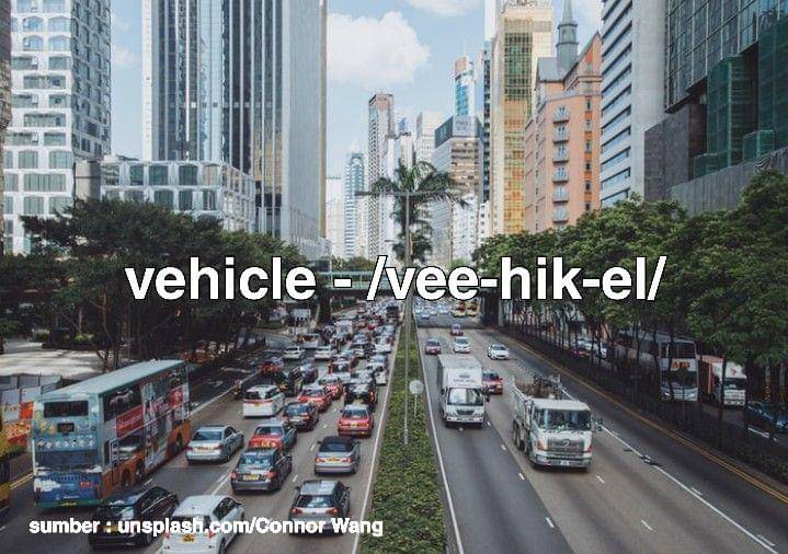 4. Aturan ejaan huruf vokal /i/ yang berbunyi /ai/ ternyata tidak berlaku untuk 'vehicle'. Pelafalan yang tepat adalah /vee-hik-el/