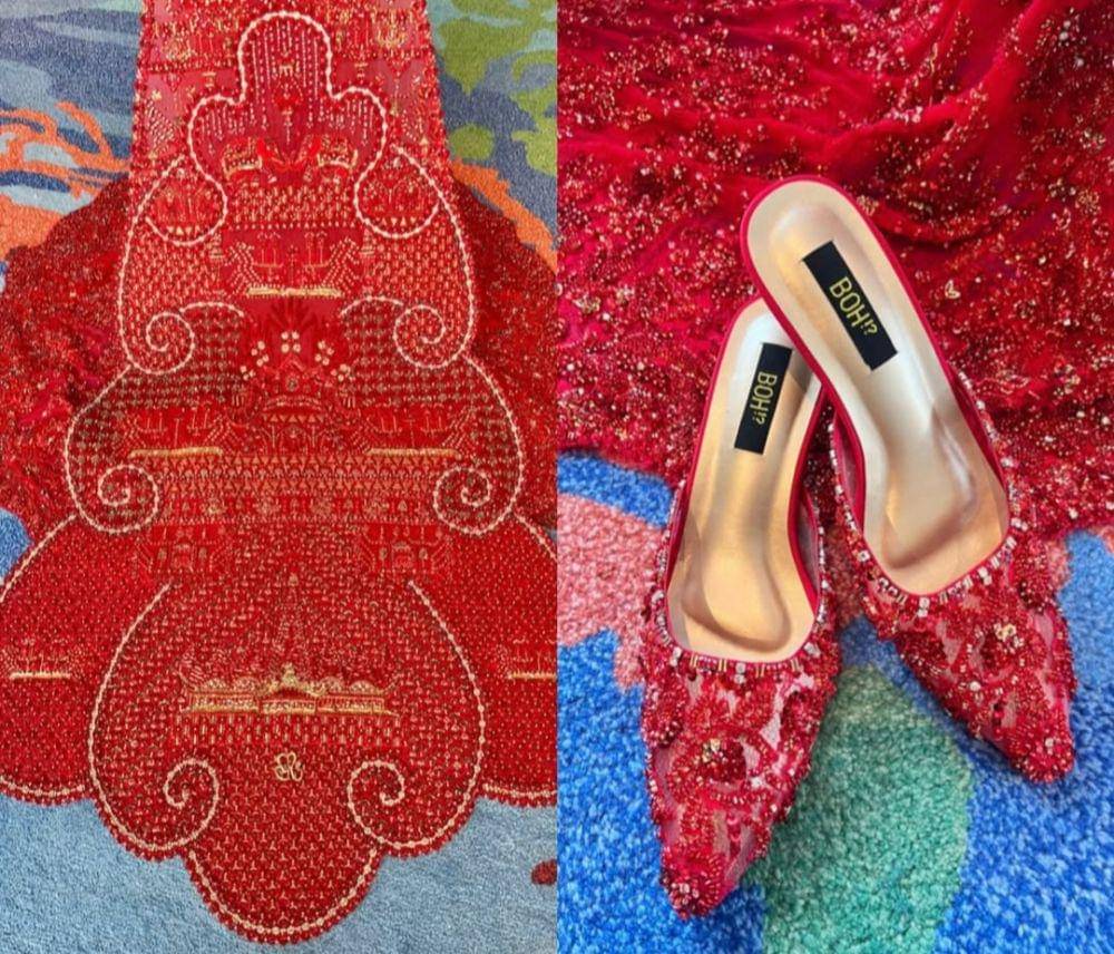 5. Sepatu heels bahan lace yang dipermanis manik-manik di bagian pinggirnya melengkapi penampilan pengantin perempuan