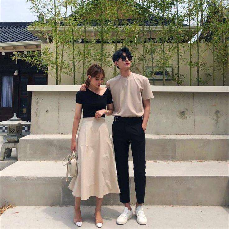 Jika outfit cowok menggunakan atasan cokelat dan bawahan hitam, maka outfit cewek menggunakan atasan hitam dan bawahan cokelat. Outfit couple satu ini dapat memberi kesan saling melengkapi satu sama lain.