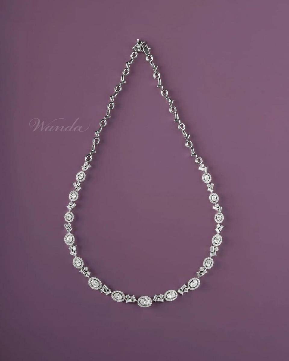 4. Kalung yang dikenakan Mahalini pun dirancang spesial oleh Wanda Ponika, berdesain semi choker dengan hiasan oval cut berlian berkualitas tinggi