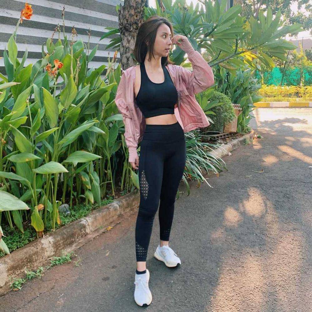 10. Sepatu bisa dipadukan dengan workout outfit ala Clairine ini