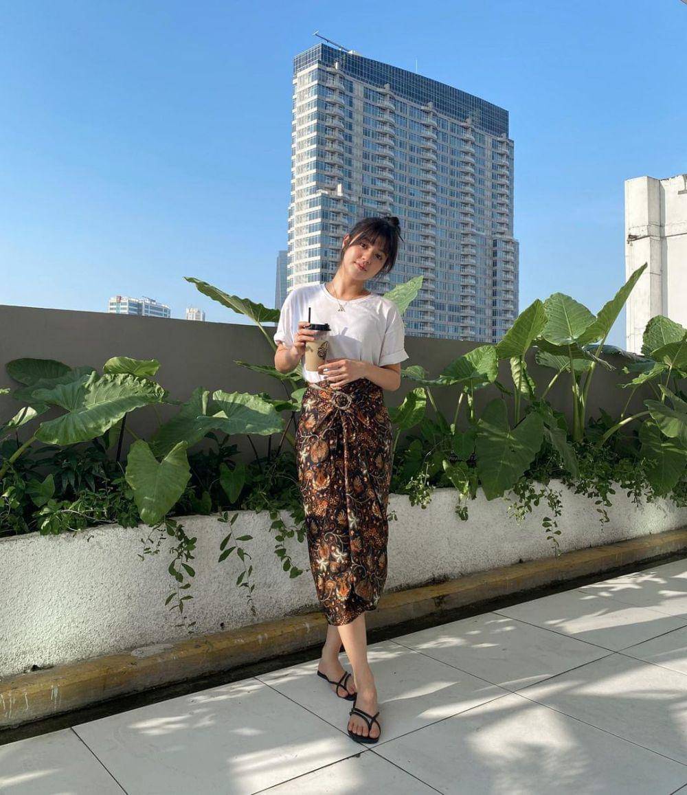 6. Buat look simpel nan elegan, coba kombinasi kaos putih lengan pendek dan kain batik sebagai rok. Manis banget!
