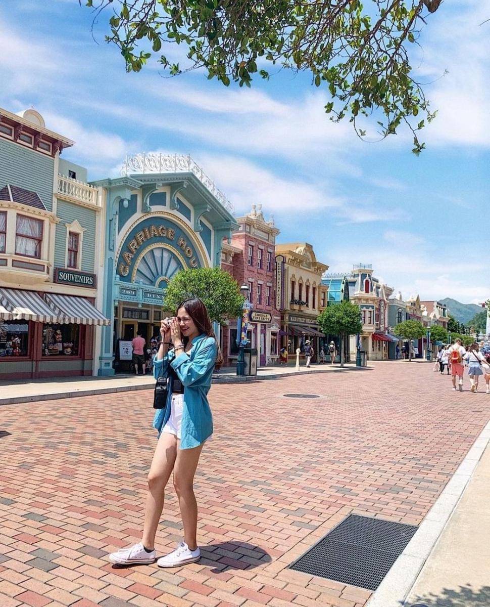 1. Hangout bareng sahabat padukan crop top model hombro dengan celana boyfriend jeans, jangan lupa sling bag agar makin keren