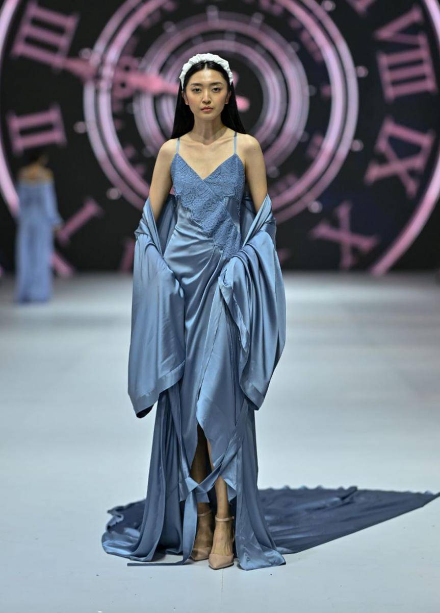 1. Penampilan pertama dibuka dengan koleksi workwear yang terdiri dari setelan blazer dan maxi skirt, lengkap dengan lanyard!
