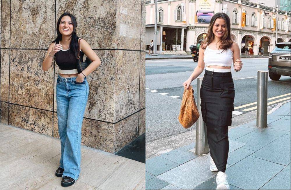 3. Selanjutnya, Marsha memilih sleeveless crop top putih dengan long cargo pants hitam serta sneakers putih
