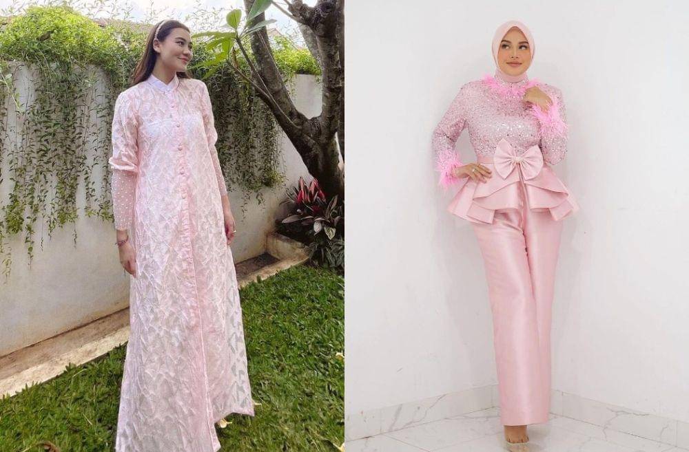 6. Cute dengan tema pink, suka long dress brokat ala Aaliyah atau peplum jumpsuit berhias pita ala Aurel, nih?
