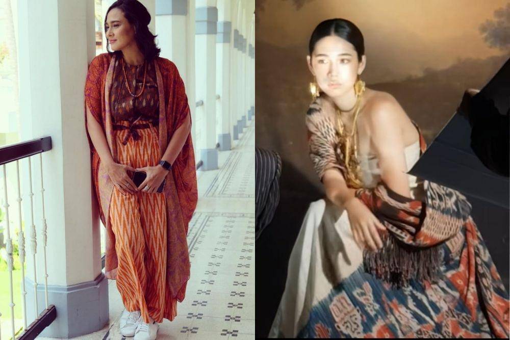 8. Berbalut dress etnik, Ine Febriyanti memilih gaya tabrak motif nuansa warna cerah. Nurra tampil lebih elegan degan sleeveless dress dan kain tenun saat photosoot