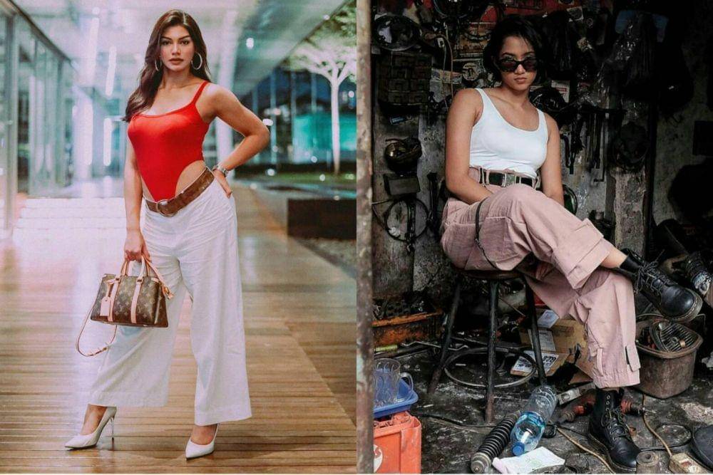 2. Kompak dengan tank top dan celana longgar yang diberi belt, Jihane memilih heels yang classy sedangkan Aghniny gahar dengan boots
