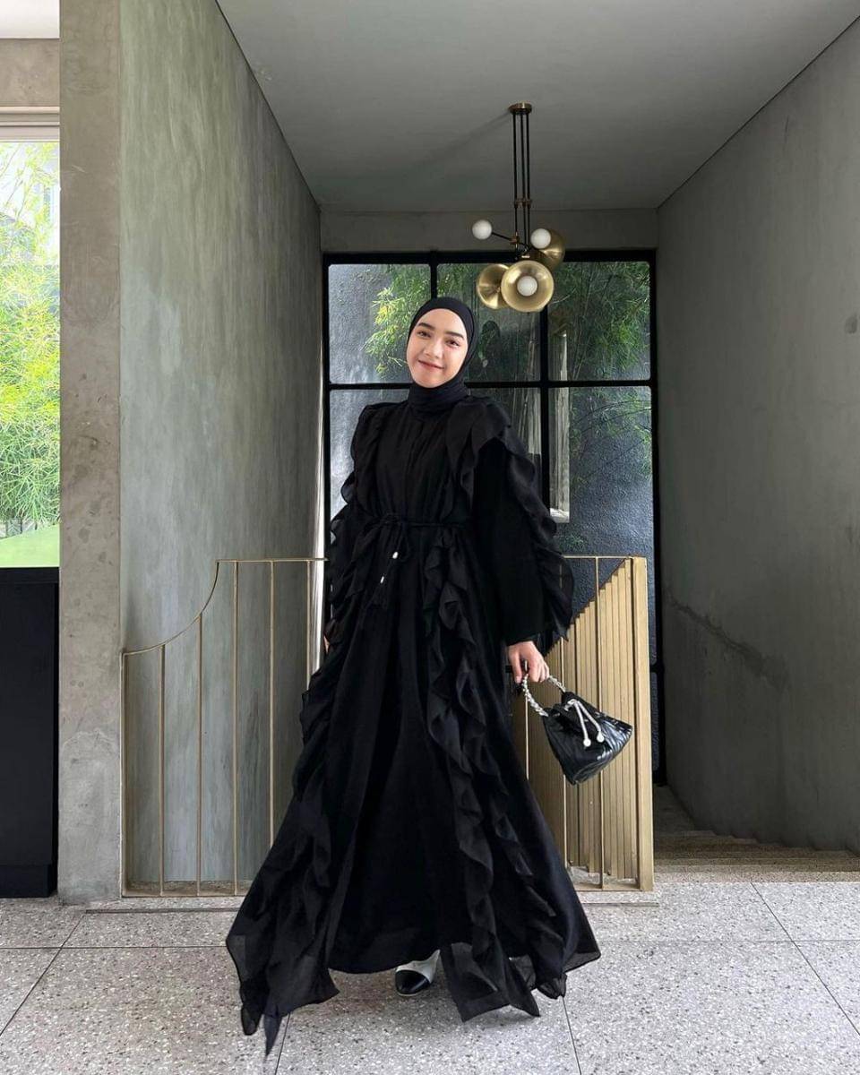 10 Ide Dress Hijab Rini Setiya Ayu, Gayanya Anggun dan Glamor!