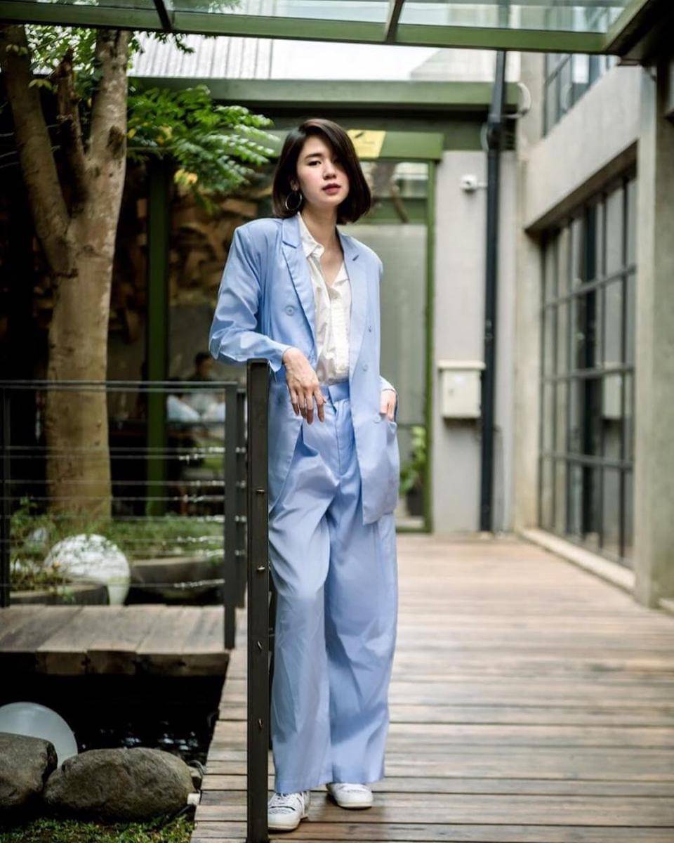 4. Masih dalam suasana liburan nih, bisa juga loh pakai blazer untuk gaya busana santai untuk jalan-jalan. Kece banget 'kan?