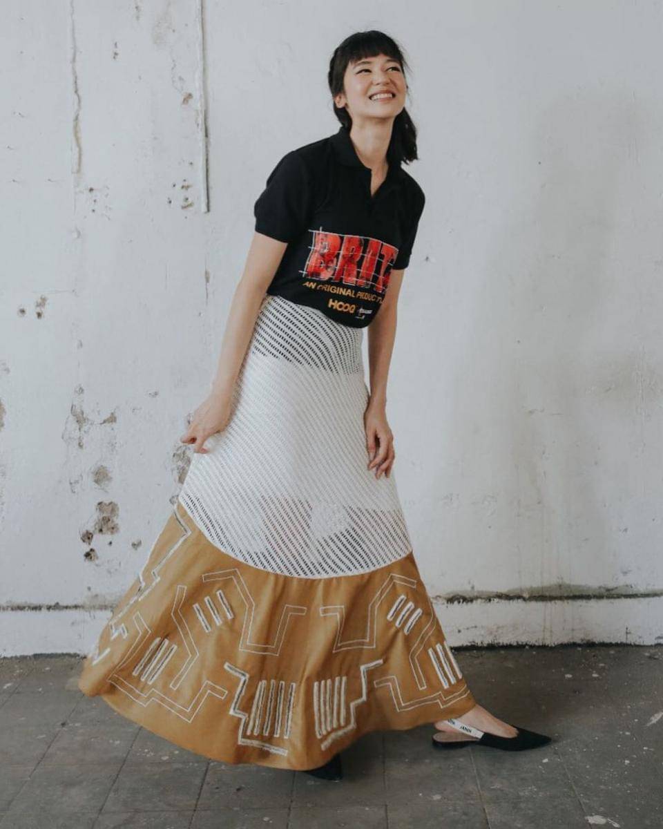 5. Suka berbusana santai namun tetap rapi? Bisa intip gaya Laura yang menggunakan t-shirt dan skirt seperti ini, yes!