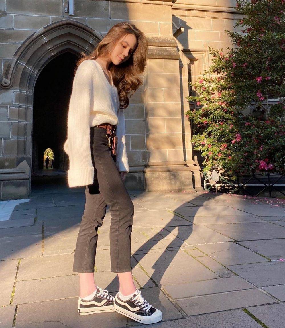 5. Cari fashion yang nyaman? Sweater dan basic pants khaki adalah pilihan yang sempurna