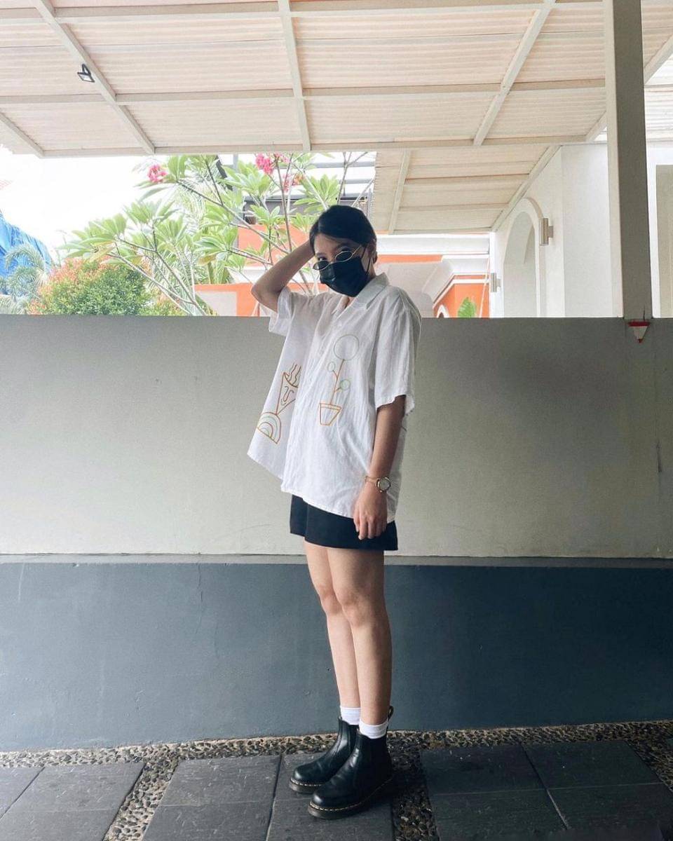 4. Kalau lebih suka look boyish, pakai oversize t-shirt yang dipadukan sepatu docmart atau ankle boots, sederhana namun tetap stylish!