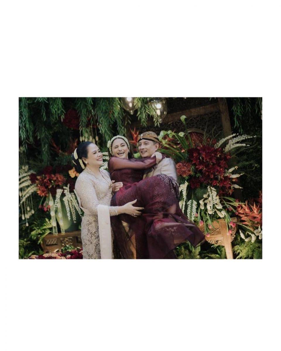3. Bernuansa bold dan glam, Amanda pilih kemben batik warna merah marun. Dipadu bawahan jarit warna cokelat bata