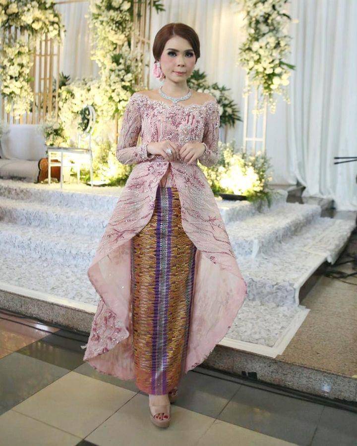 2. Bak Barbie, ia dan saudaranya kompak memilih kebaya brokat dengan bawahan songket warna pink fuchsia