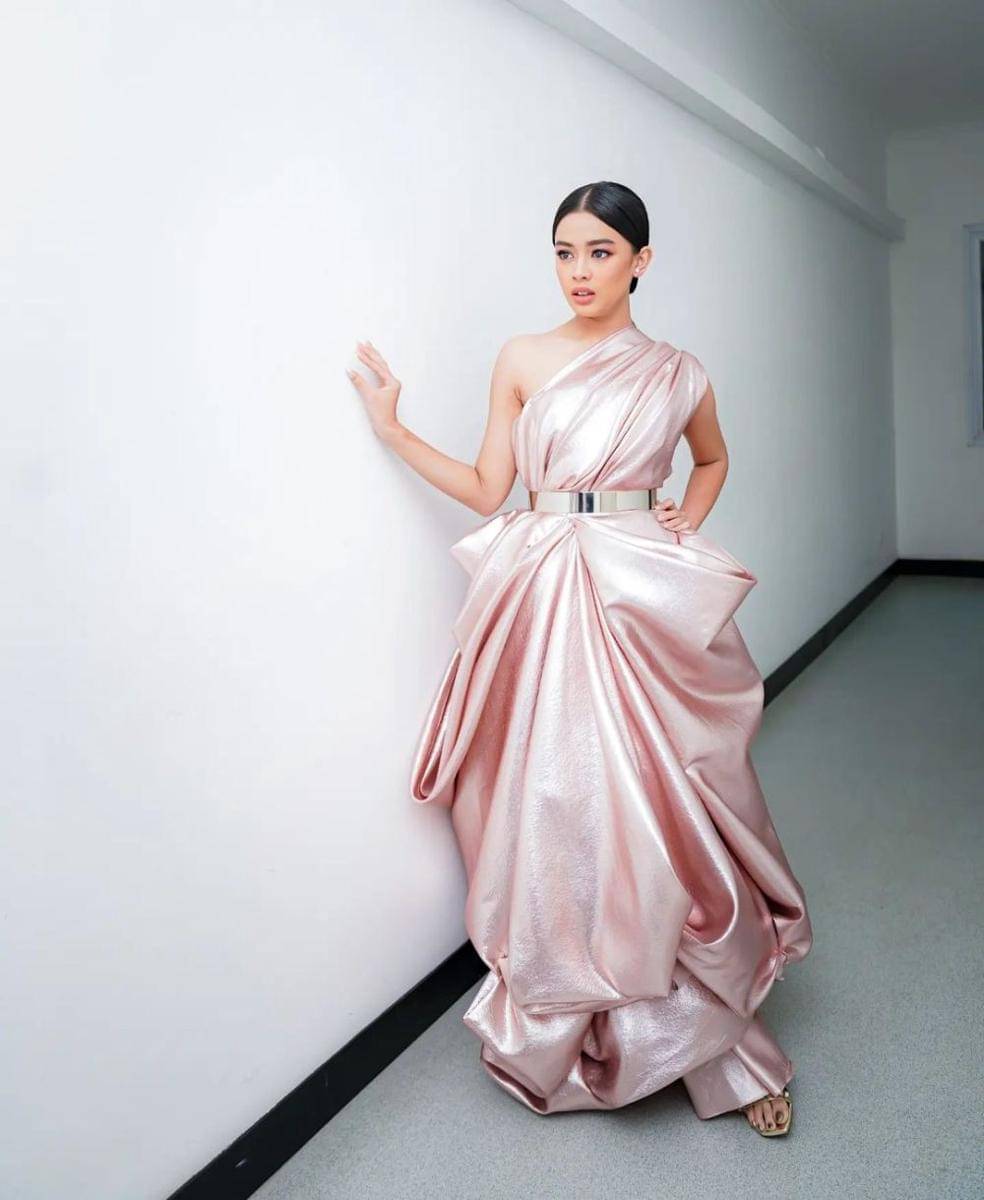 22. Aksen lipit yang membentuk gaun bervolume, dapat menjadi referensi untuk jadikanmu pusat atensi