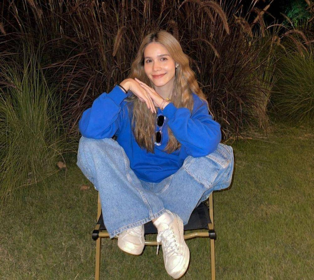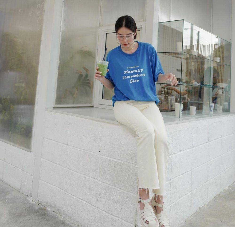 2. Kalau kamu orangnya mageran, coba pakai casual one set outfit biru muda lalu padukan dengan sneakers senada. Comfy abis!