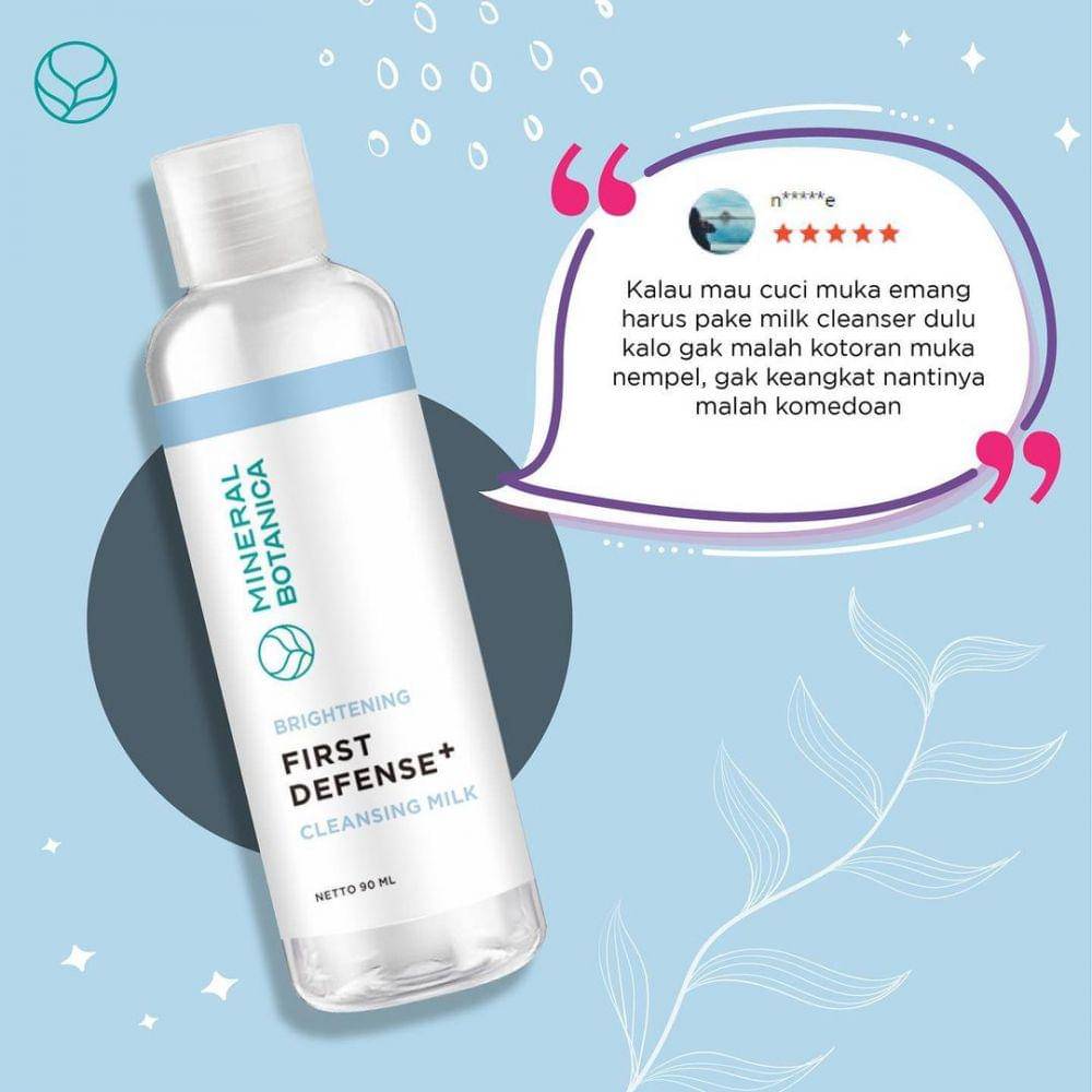 Mineral Botanica First Defence Cleansing Milk merupakan produk pembersih wajah yang mempunyai tekstur creamy dengan pH seimbang. Kandungan allantoin, glycerin, dan licorice extract di dalamnya bisa meredakan inflamasi, melembutkan, dan mencerahkan kulit wajah.