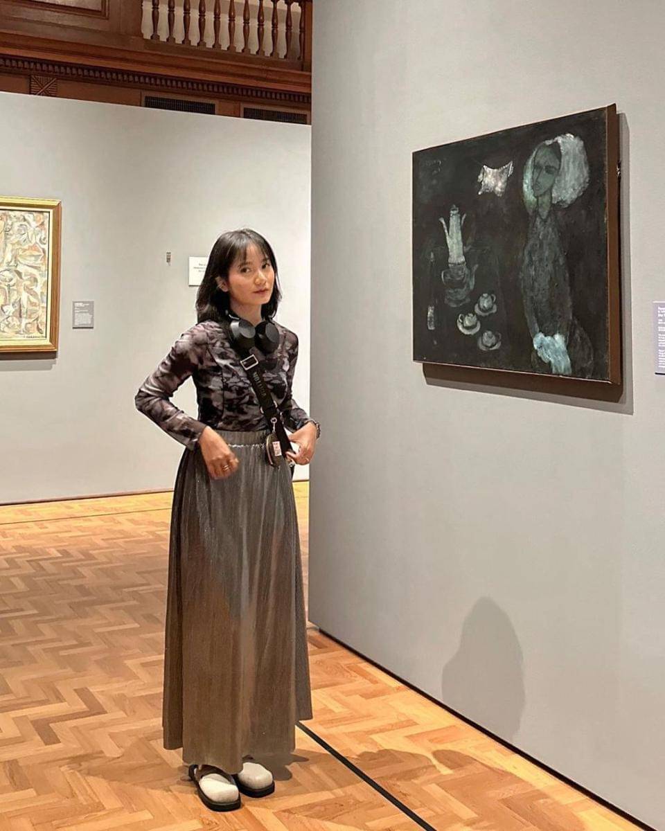 3. Tampak kalem dan feminin. Kamu dapat menyontek OOTD Jesi dengan memakai turtleneck dan rok midi warna putih. Cocok buat kuliah