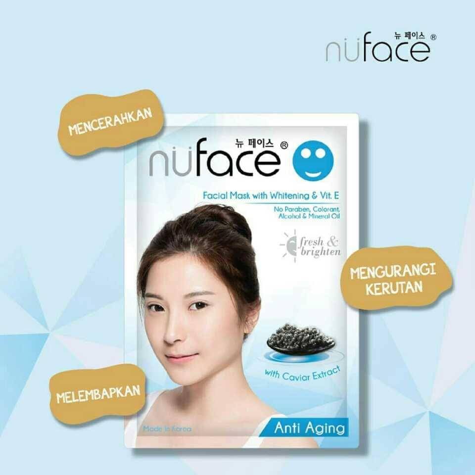 Varian ini mengandung ekstrak kaviar yang mampu memperbaiki skin barrier dan menjaga kelembapan supaya wajah gak memunculkan kerutan akibat kekeringan. Masker ini juga berfungsi mencerahkan wajah. Harga masker Nuface ini sekitar Rp20 ribuan.